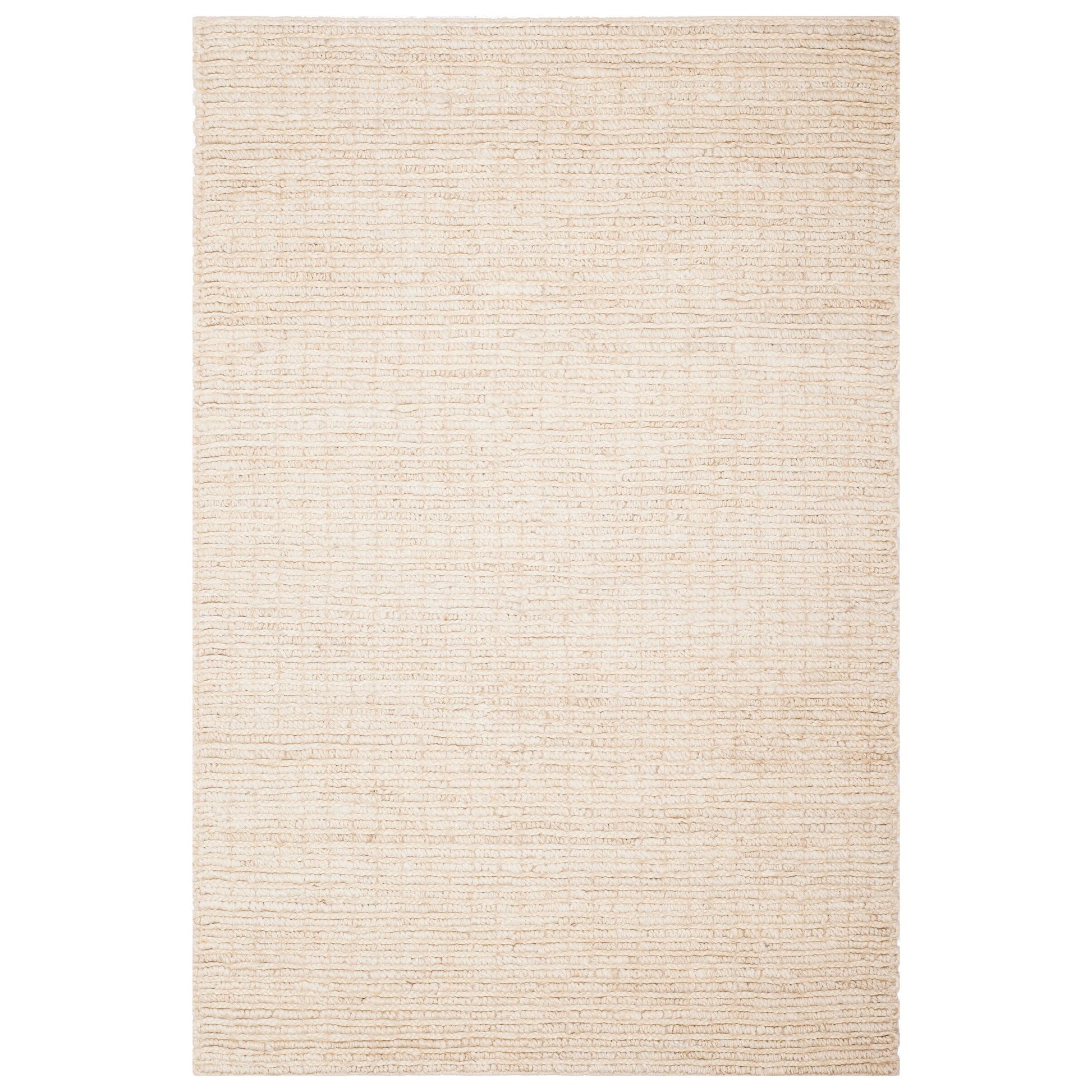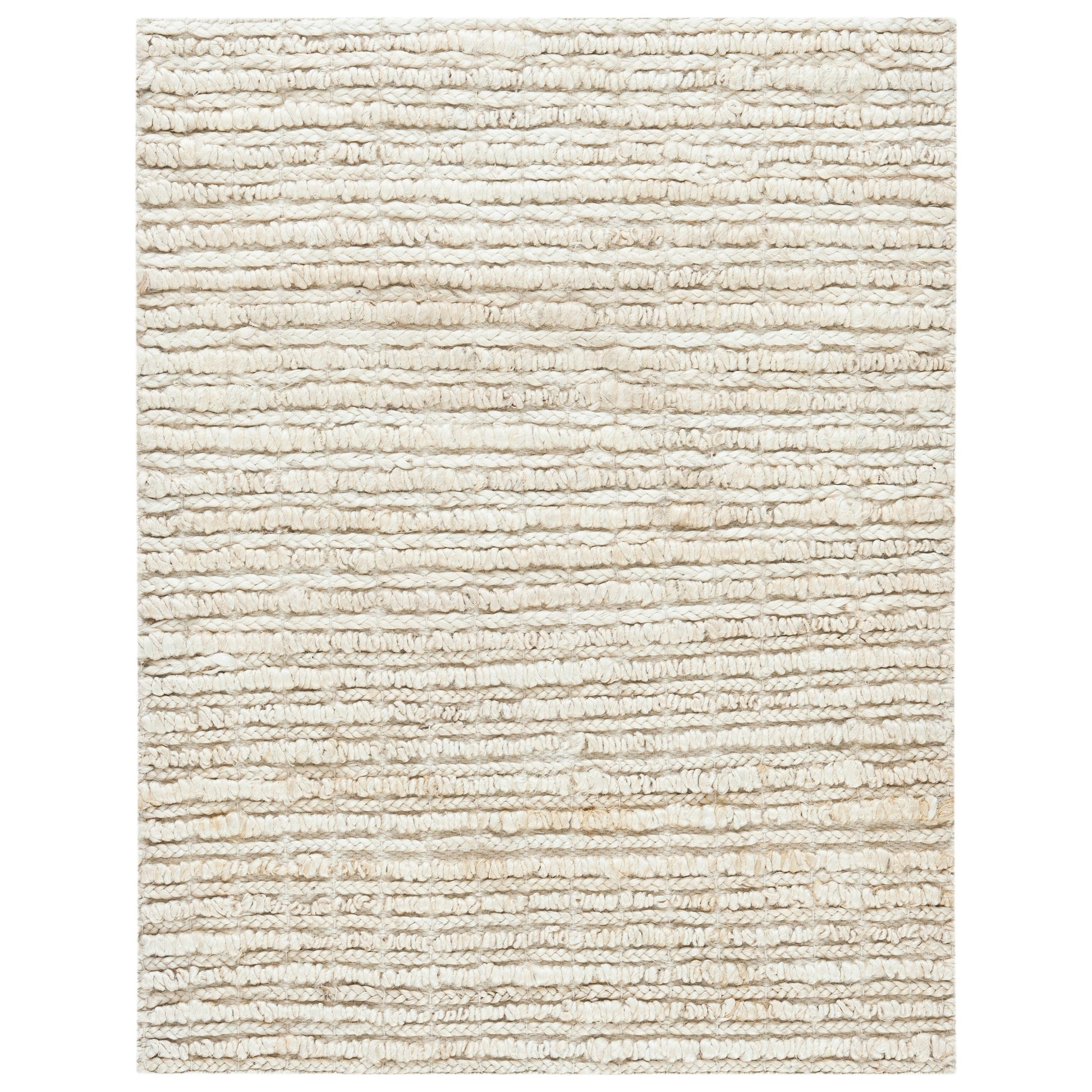 Handmade of a robust natural fiber, this ivory-tone area rug leverages the natural, earthy appeal of versatile color in a fashionable, sensible, and neutral arrangement certain to become a personal favorite for years to come.