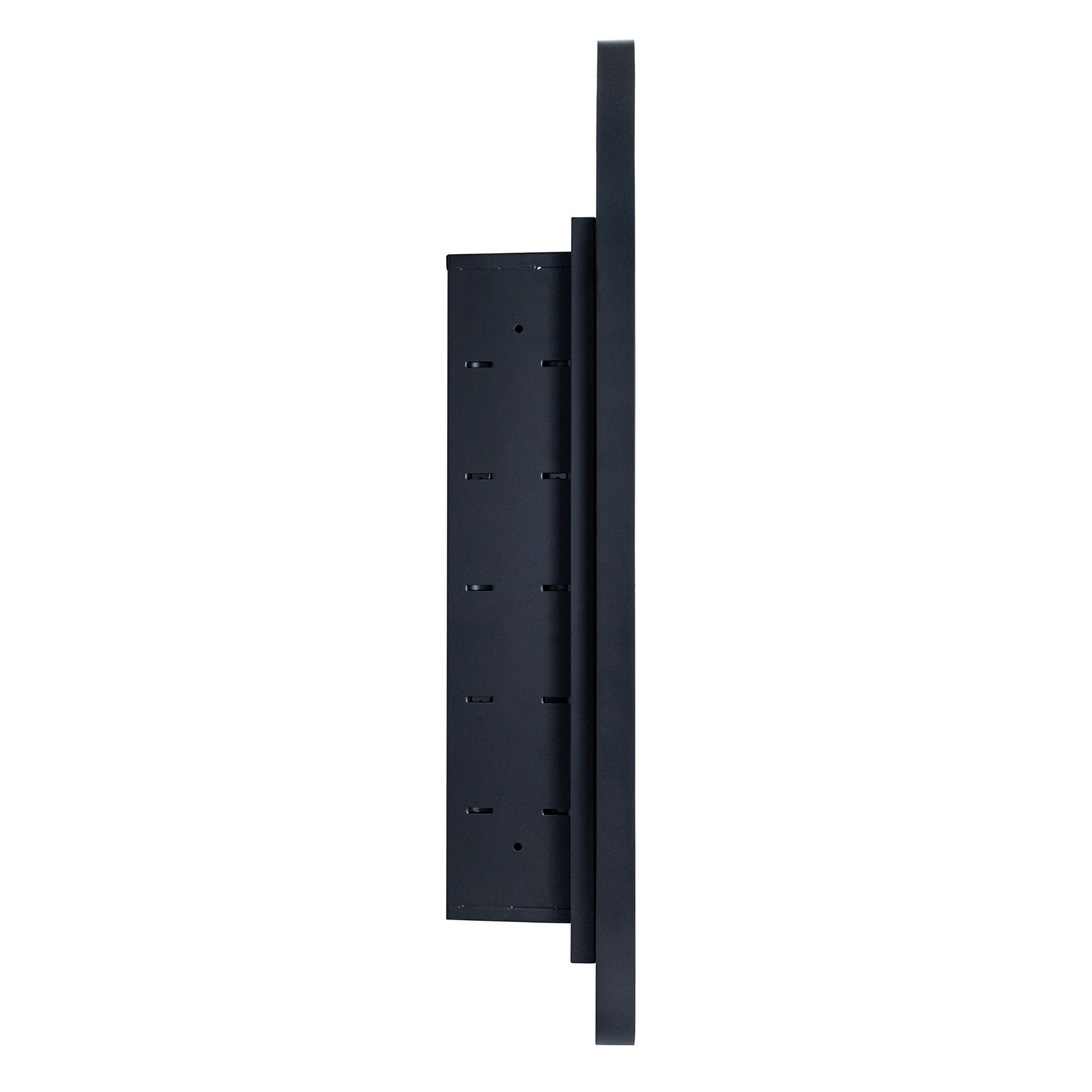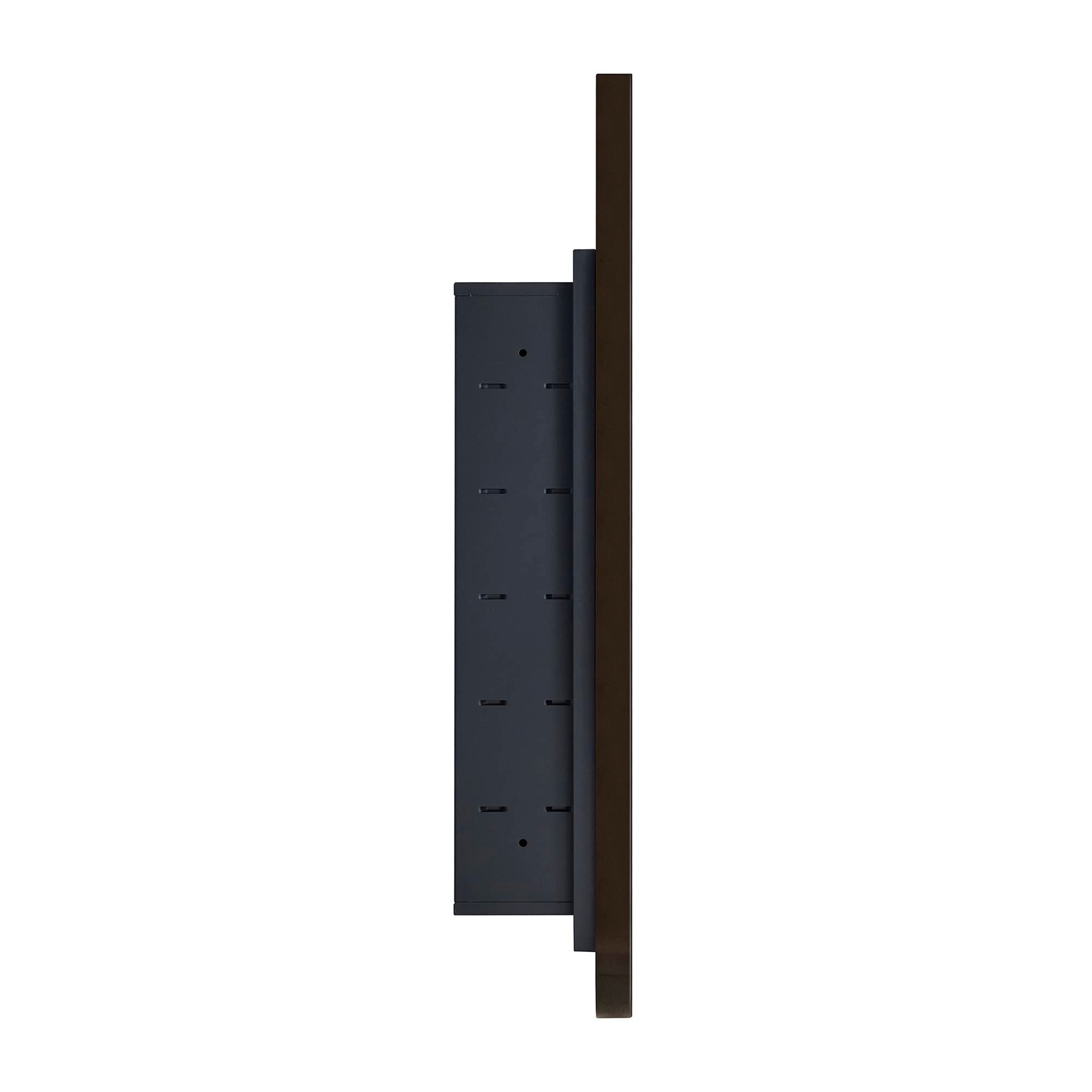• Armoires à pharmacie cintrées à cadre métallique : portes en métal haut de gamme, finition noir mat. Charnières à fermeture automatique.
