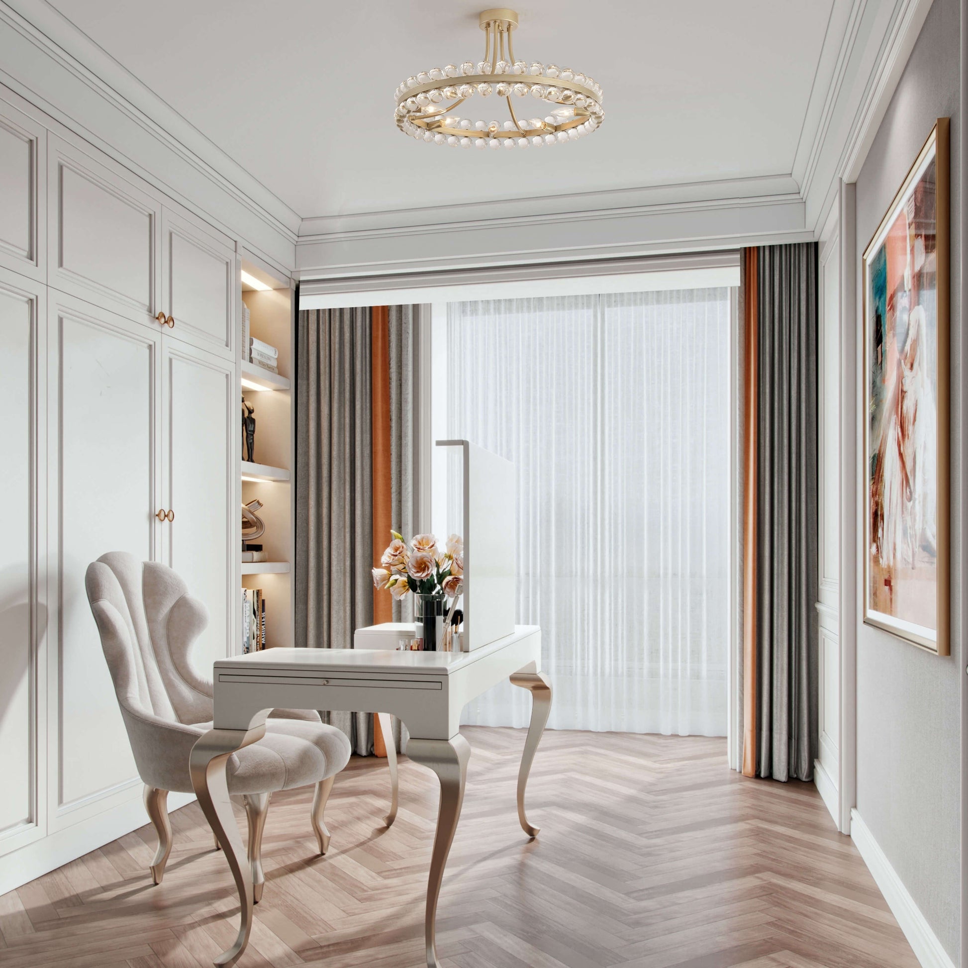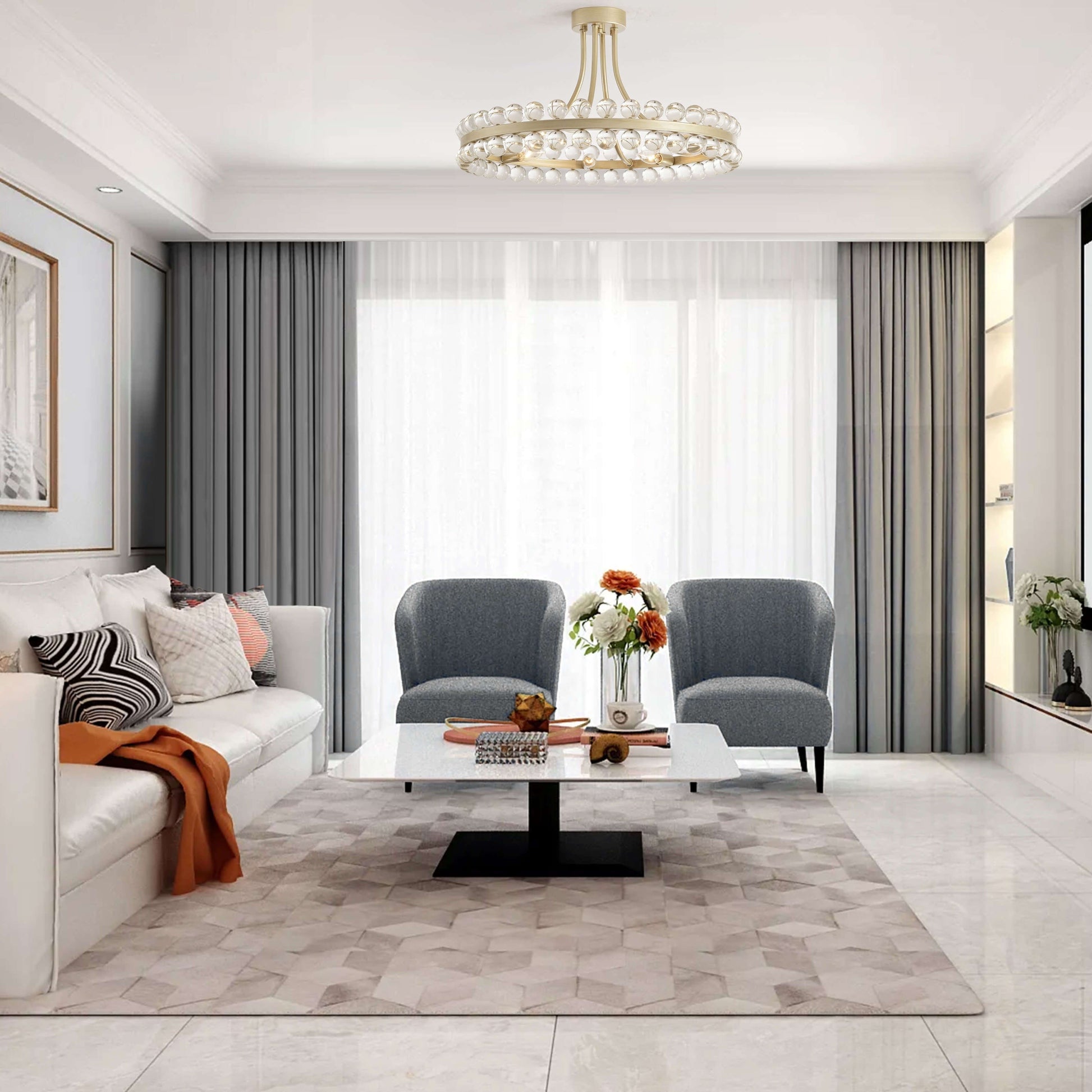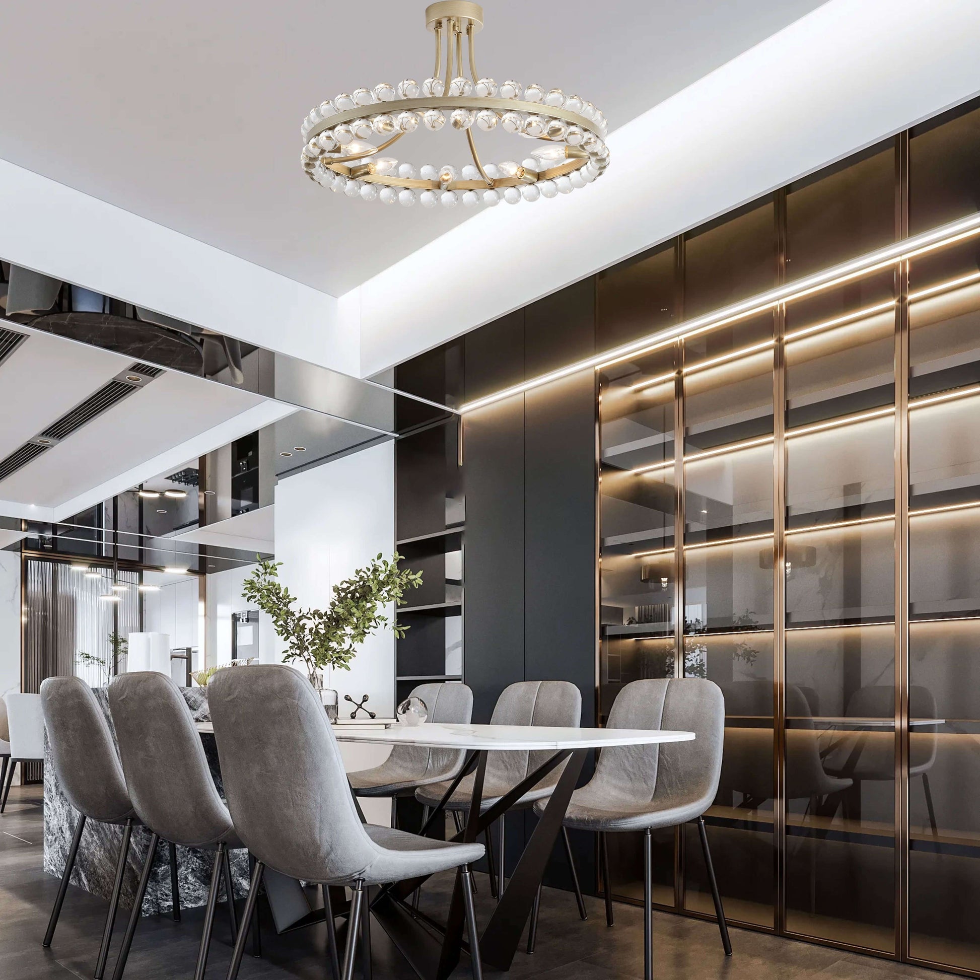 Plafonnier semi-encastré en cristal Elvira à 8 lumières,...
