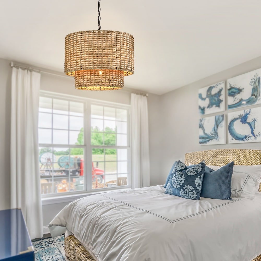 Lustre tambour à 4 lumières en rotin Lennie...