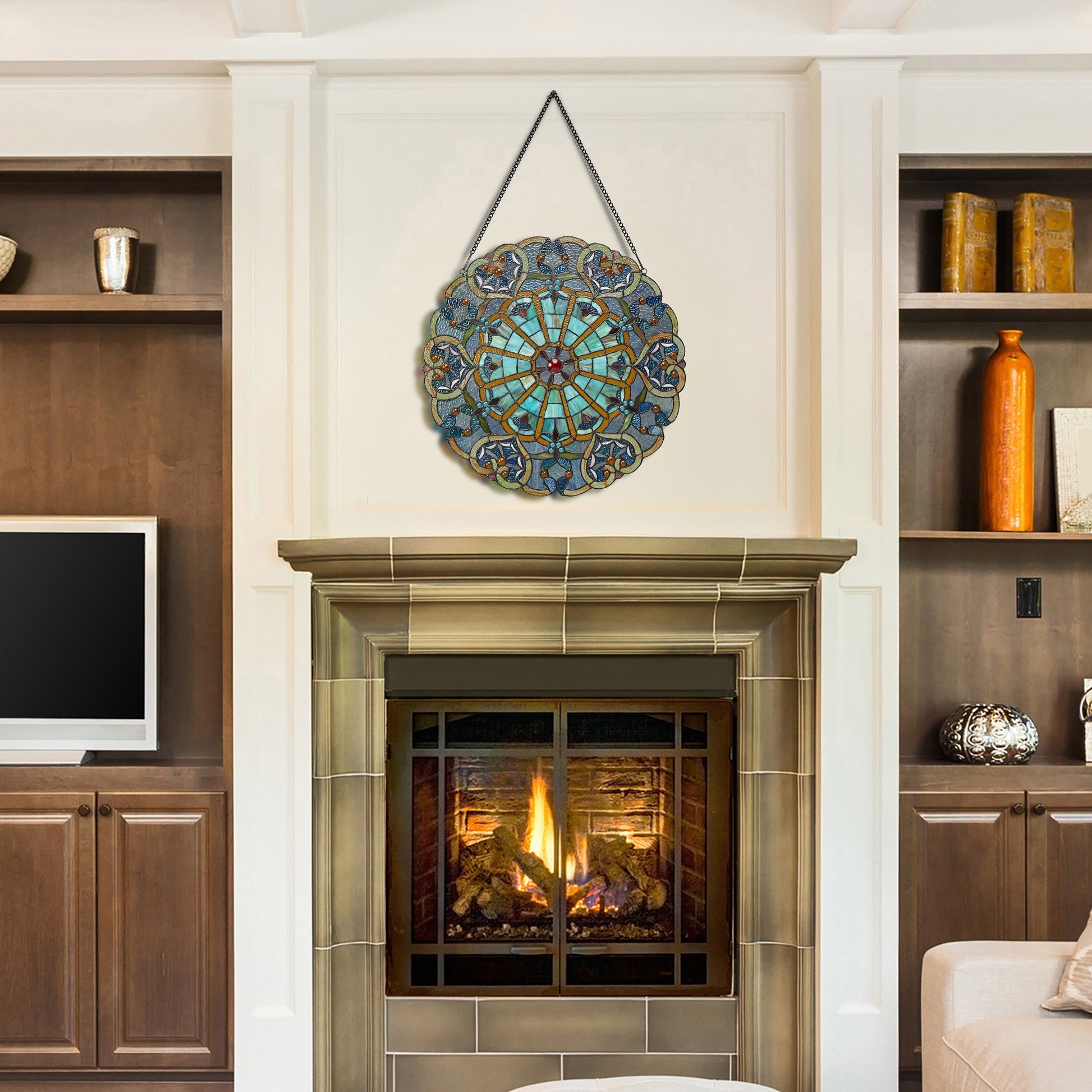 Ajoutez une touche de tradition et d'élégance à n'importe quelle pièce avec ce panneau de vitrail d'inspiration victorienne de 55 cm. Orné d'un magnifique motif de cœur palmé aux riches nuances de bleu, ce panneau suscitera assurément la conversation. Fabriqué à la main en vitrail, il capte et reflète magnifiquement la lumière, créant un jeu de couleurs enchanteur lorsqu'il est placé devant une fenêtre ensoleillée. Il est fourni avec une chaîne de suspension de 76 cm pour une installation facile. Facile à nettoyer, il suffit d'un chiffon humide ou d'un produit à polir à l'huile de citron et d'un chiffon doux et sec pour préserver ses couleurs éclatantes.