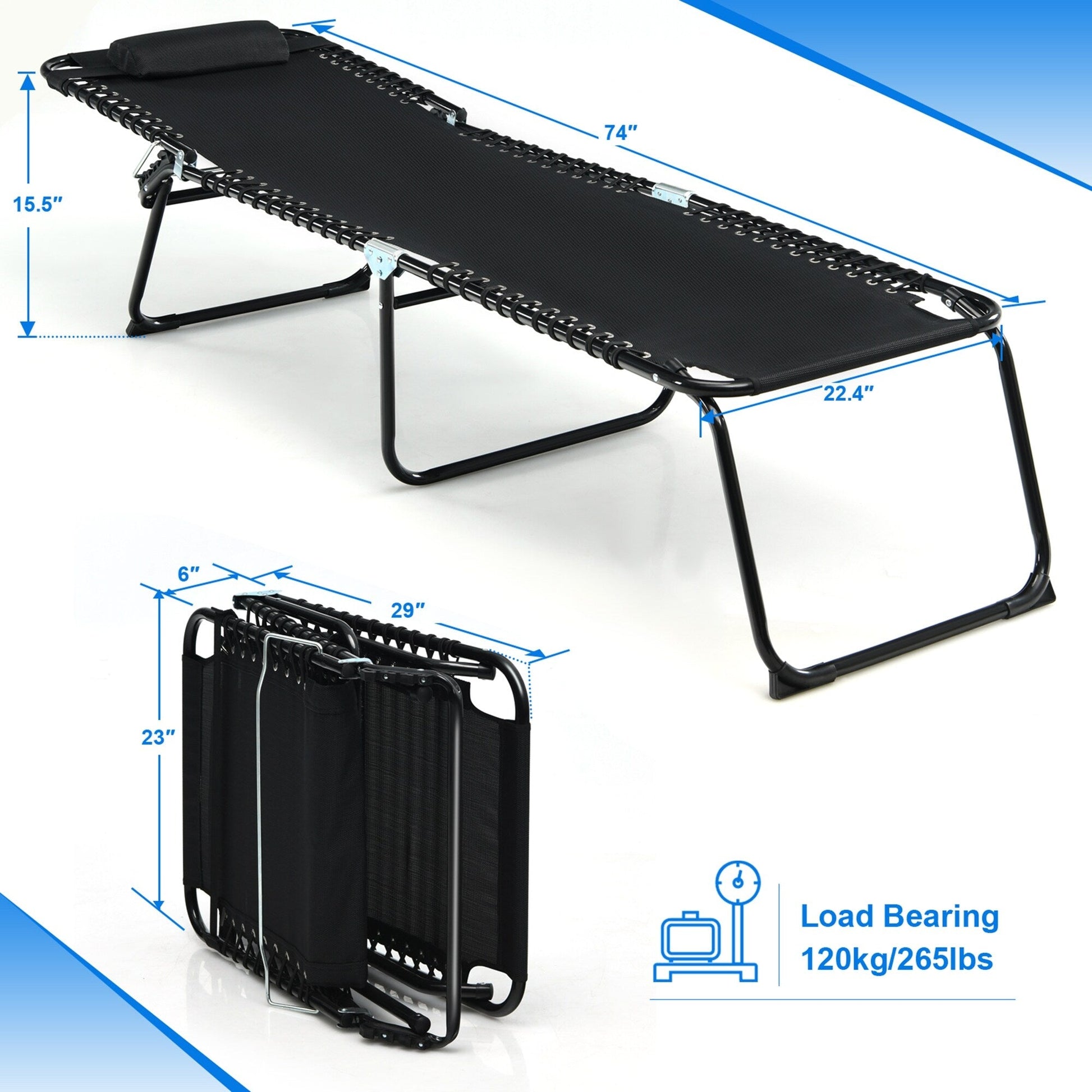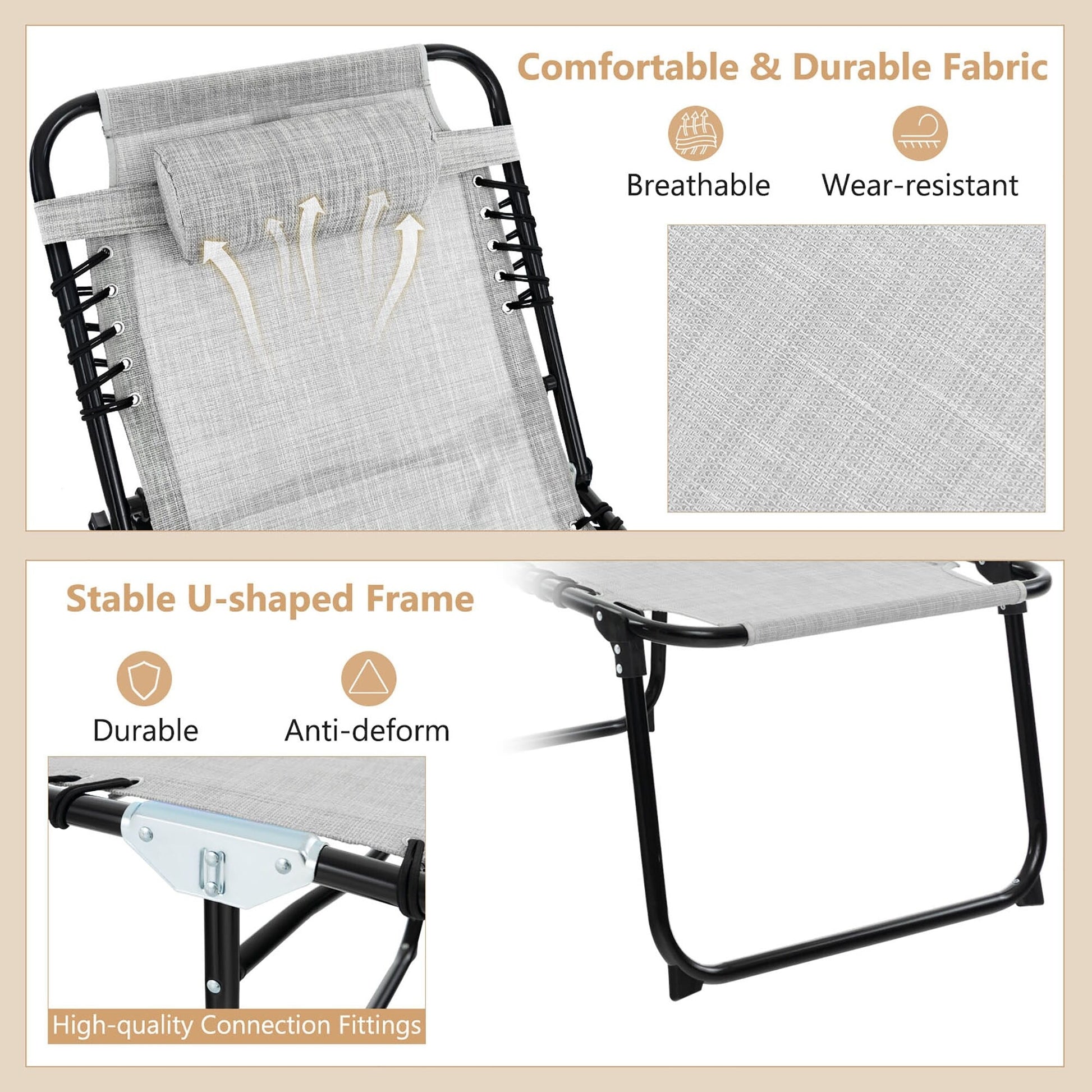 Chaise longue de plage pliante Gymax avec oreiller, 4 niveaux