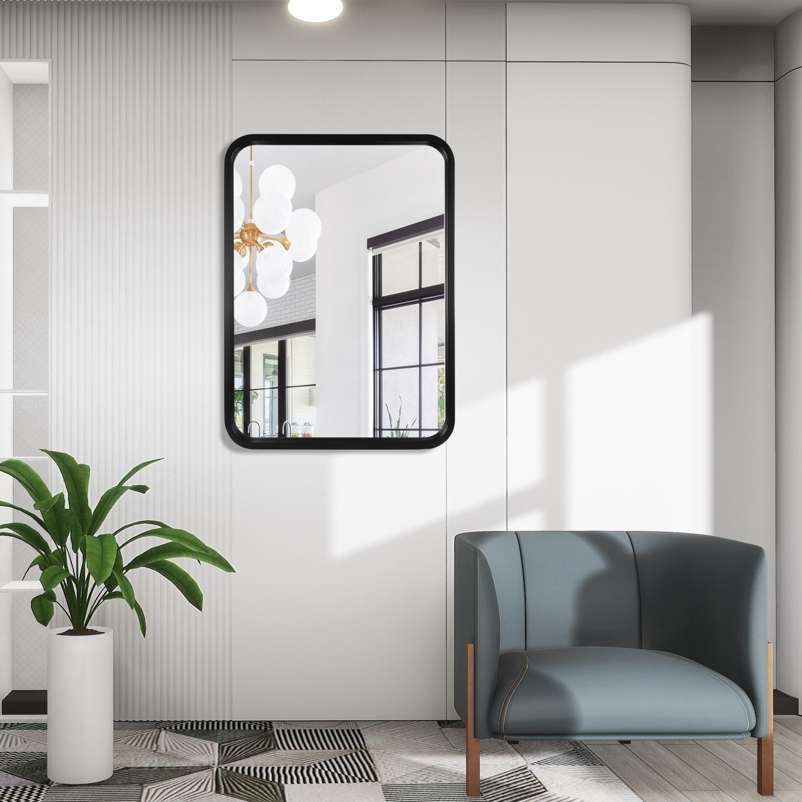 Round Corner Rectangle Farm Wall Mirror...