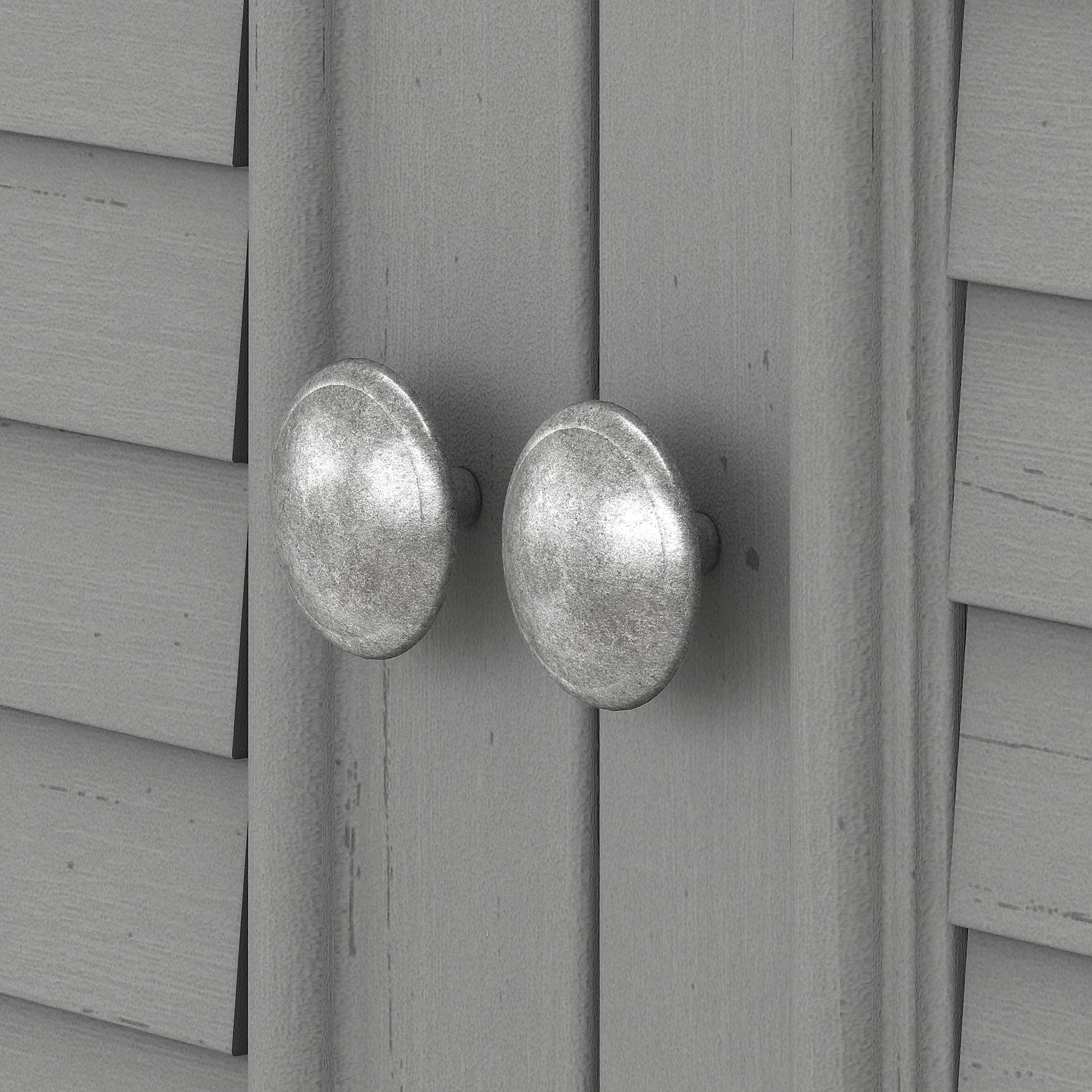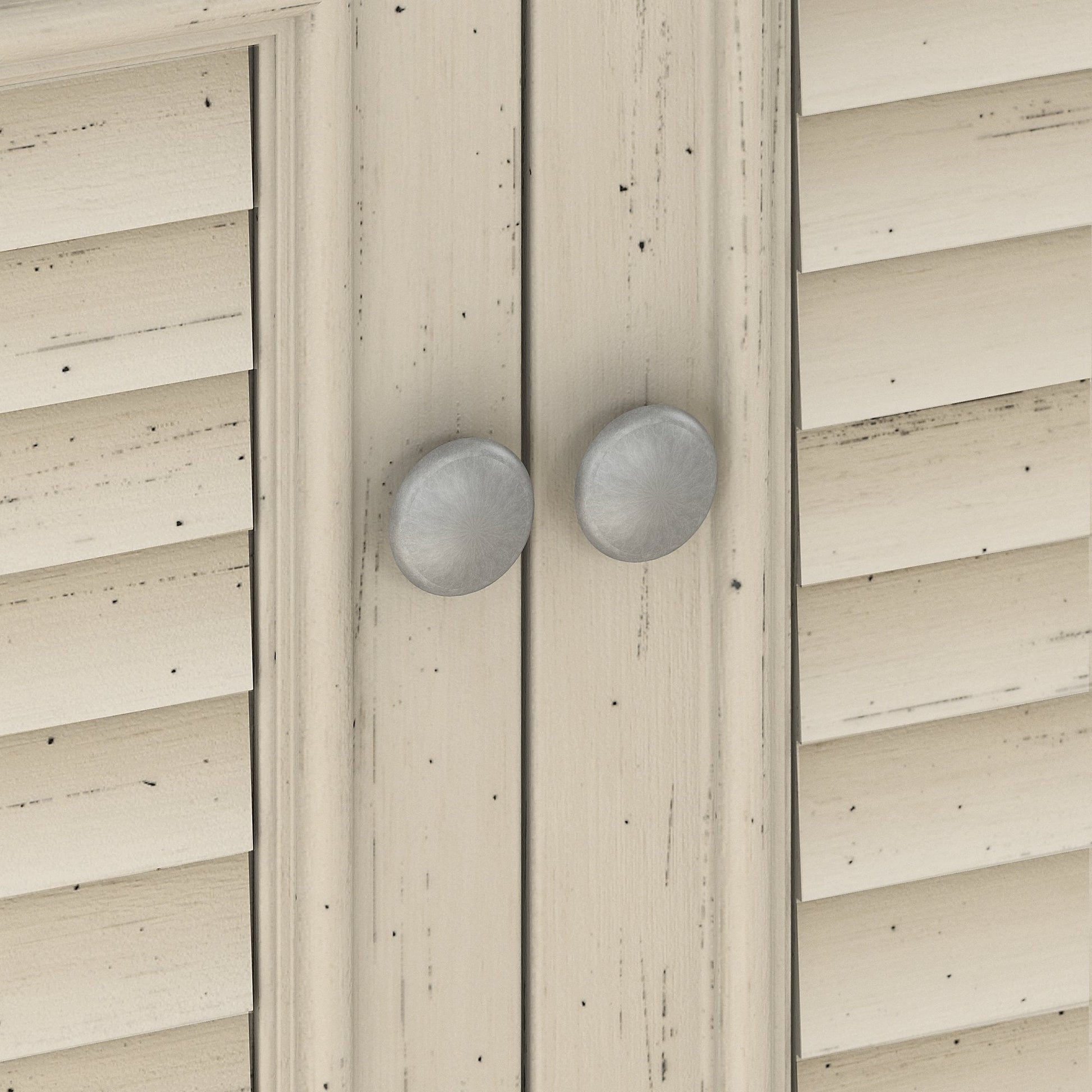 • Les portes d'armoires à persiennes dissimulent des articles ménagers, des fournitures de bureau et plus encore