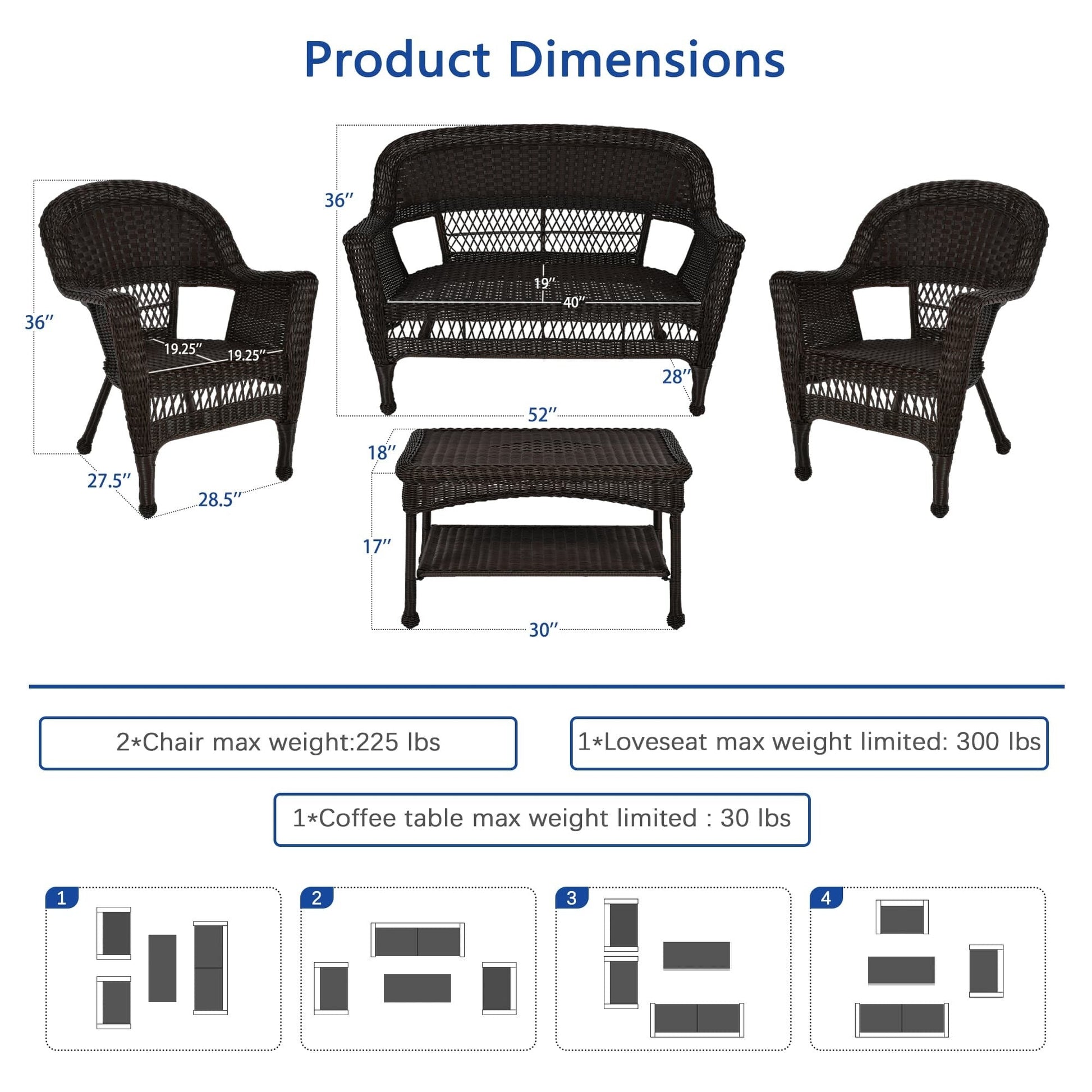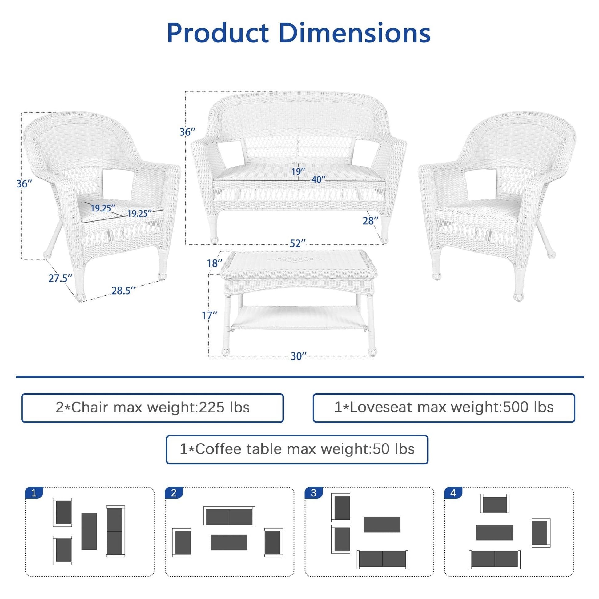 Ensemble de conversation 4 pièces pour...