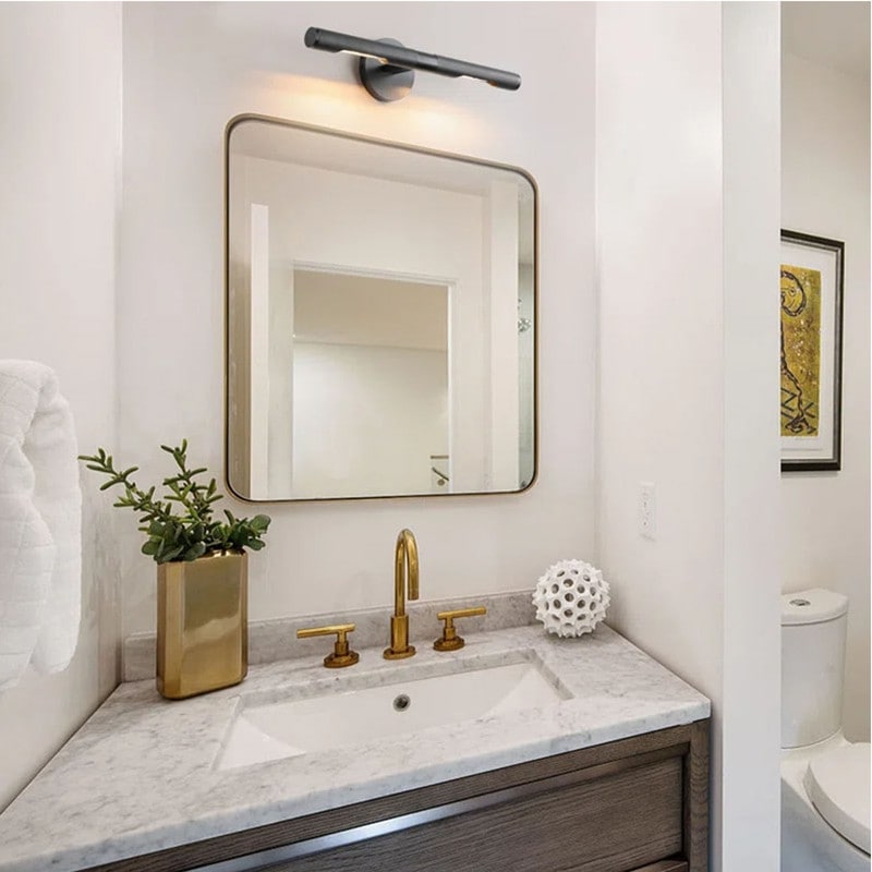 Les appliques murales pour tableau sont fabriquées à partir de matériaux de haute qualité, notamment un cadre en métal robuste et un verre épais, pour une durabilité et une longévité accrues. Leur finition dorée leur confère un style élégant et raffiné qui s'intègre parfaitement à tout type de décoration intérieure. Ce luminaire remarquable sublimera la décoration de votre pièce. Polyvalente, cette applique à deux lumières peut être suspendue verticalement près de votre miroir ou horizontalement au-dessus.