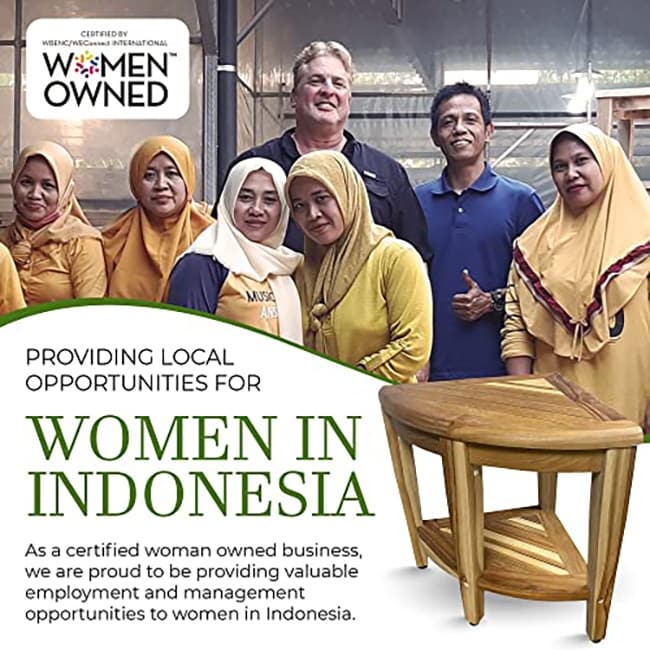 • Production durable et éthique : Fabriqué par une entreprise certifiée détenue par des femmes, ce tabouret de douche en teck reflète l'engagement de la marque pour la qualité et l'autonomisation. Chaque pièce est issue de sources responsables et conçue avec soin. Bancs de douche en teck.