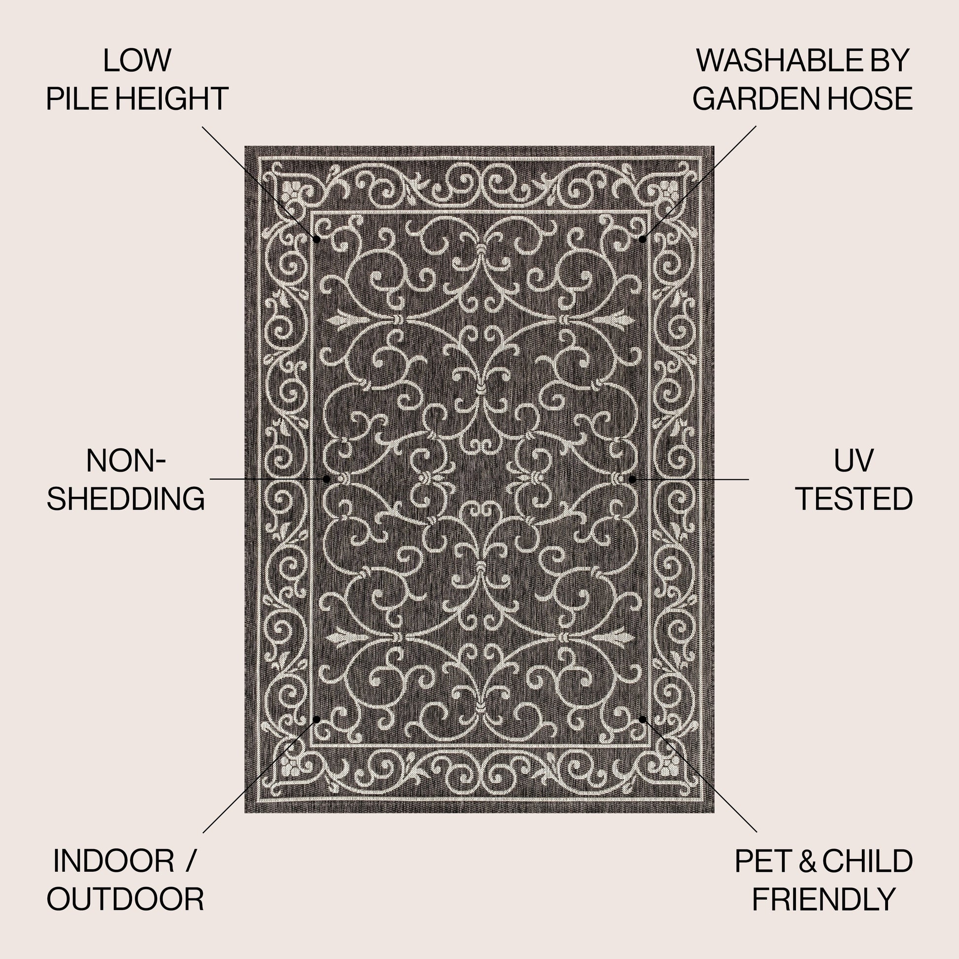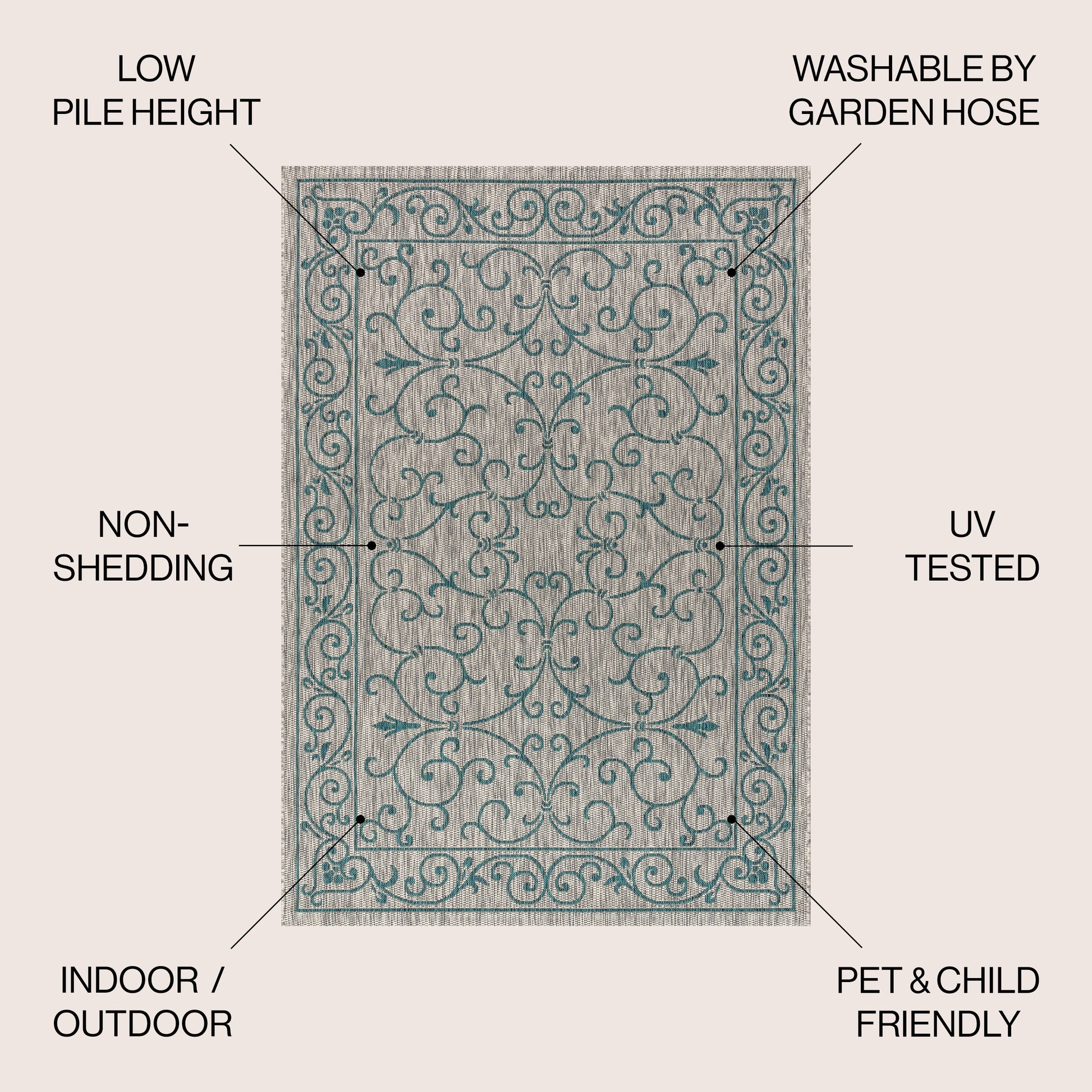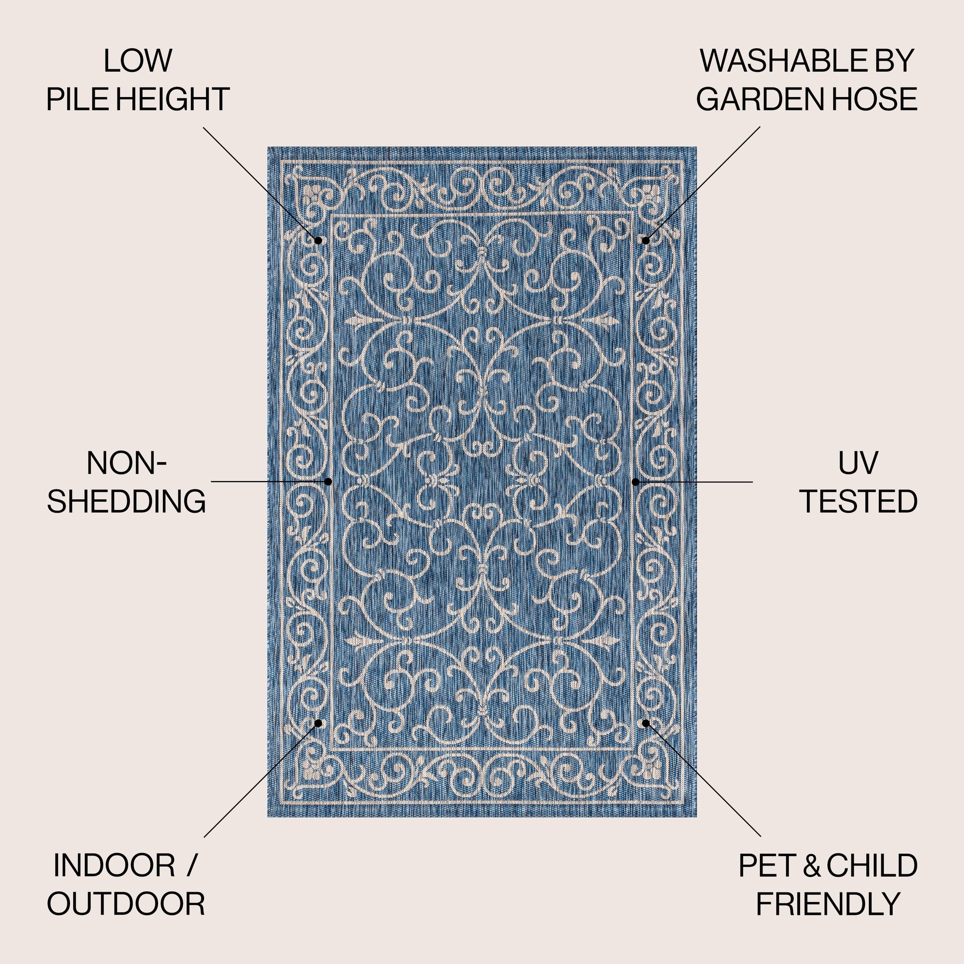 - Includes 1 indoor/outdoor area rug only
