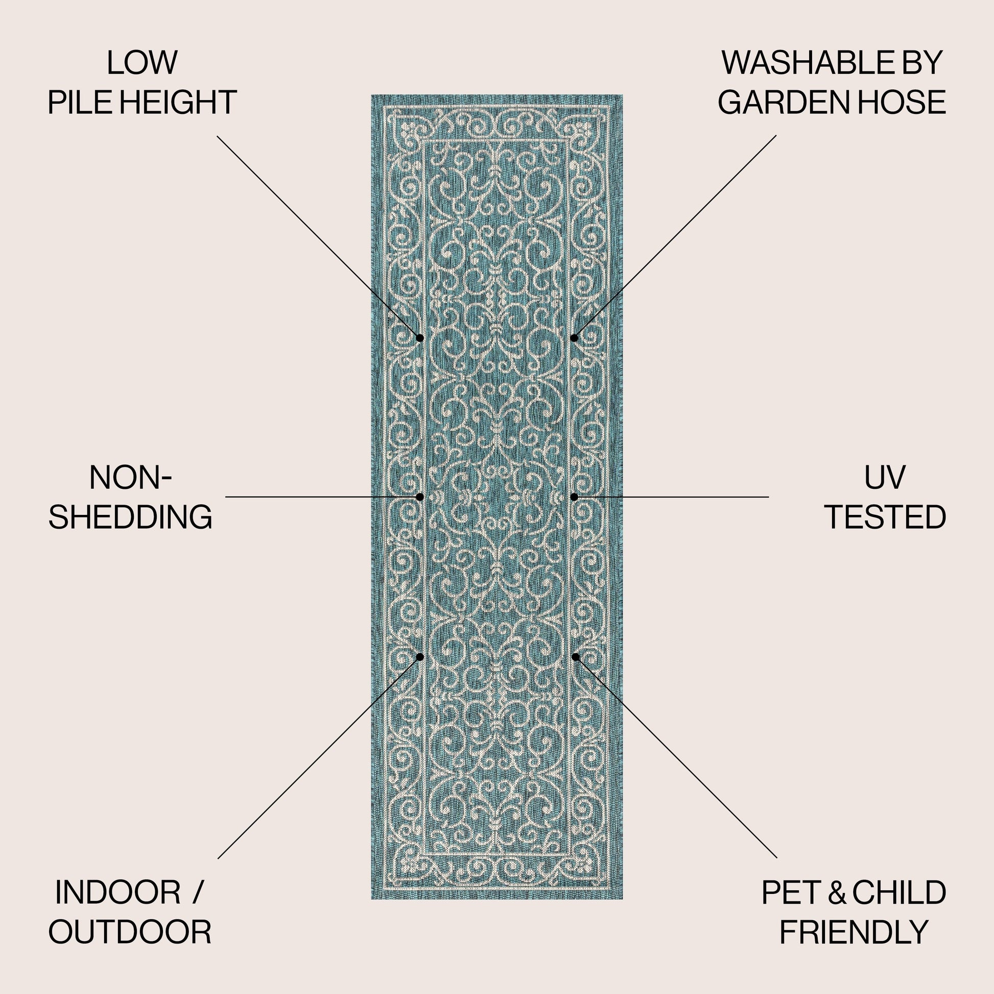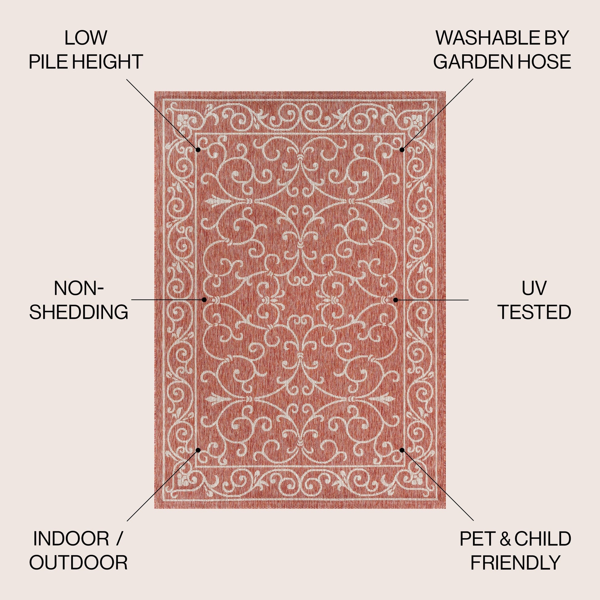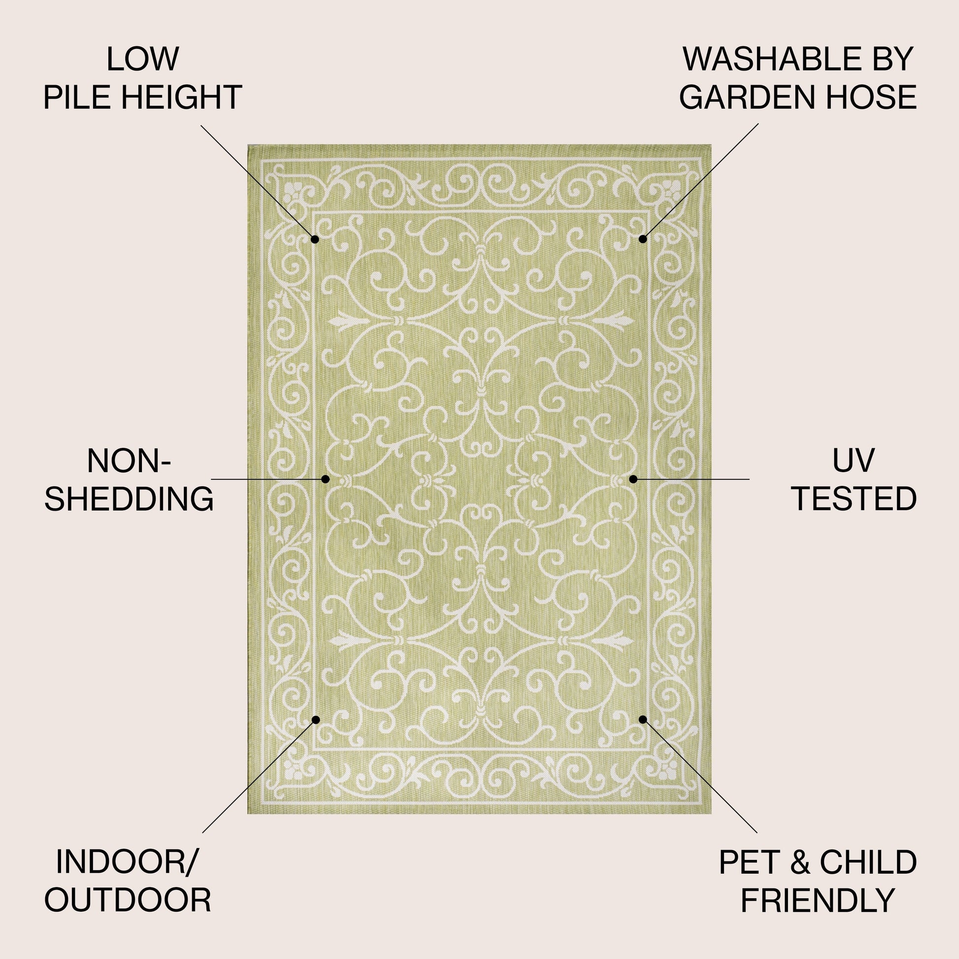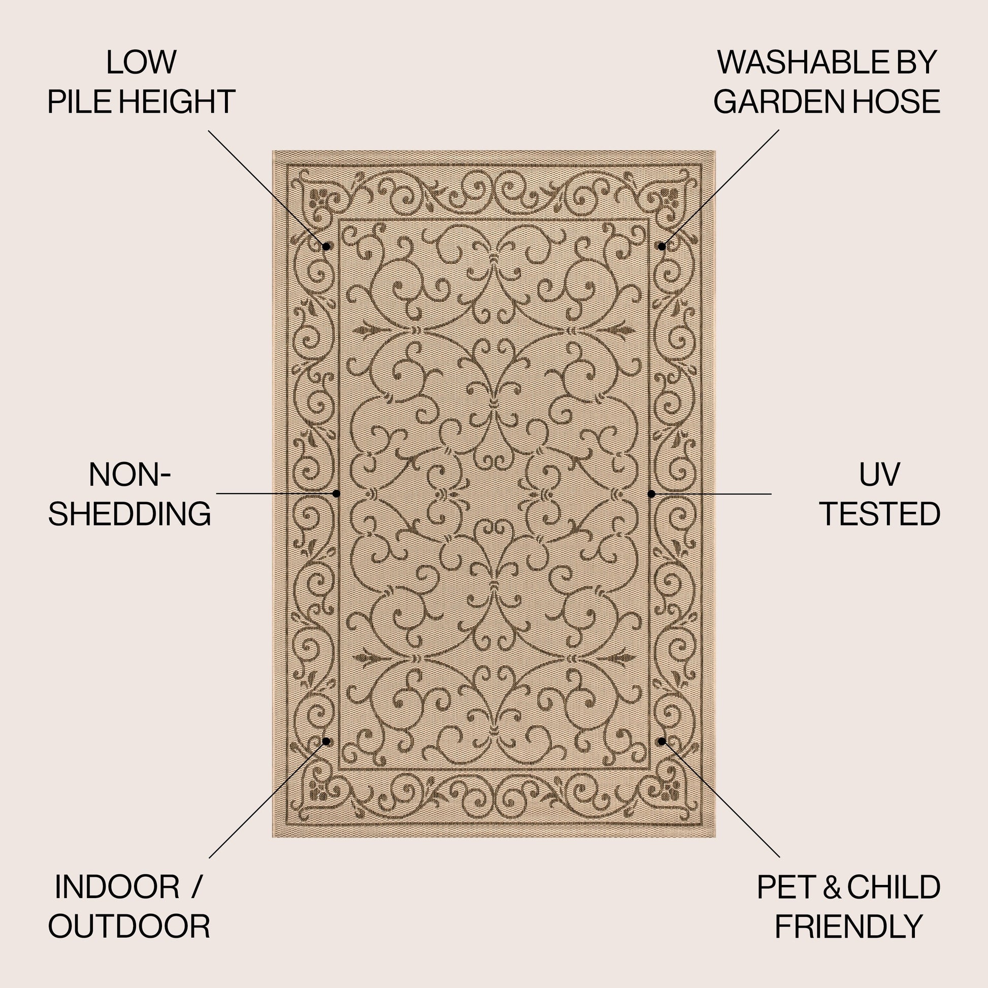- Includes 1 indoor/outdoor area rug only