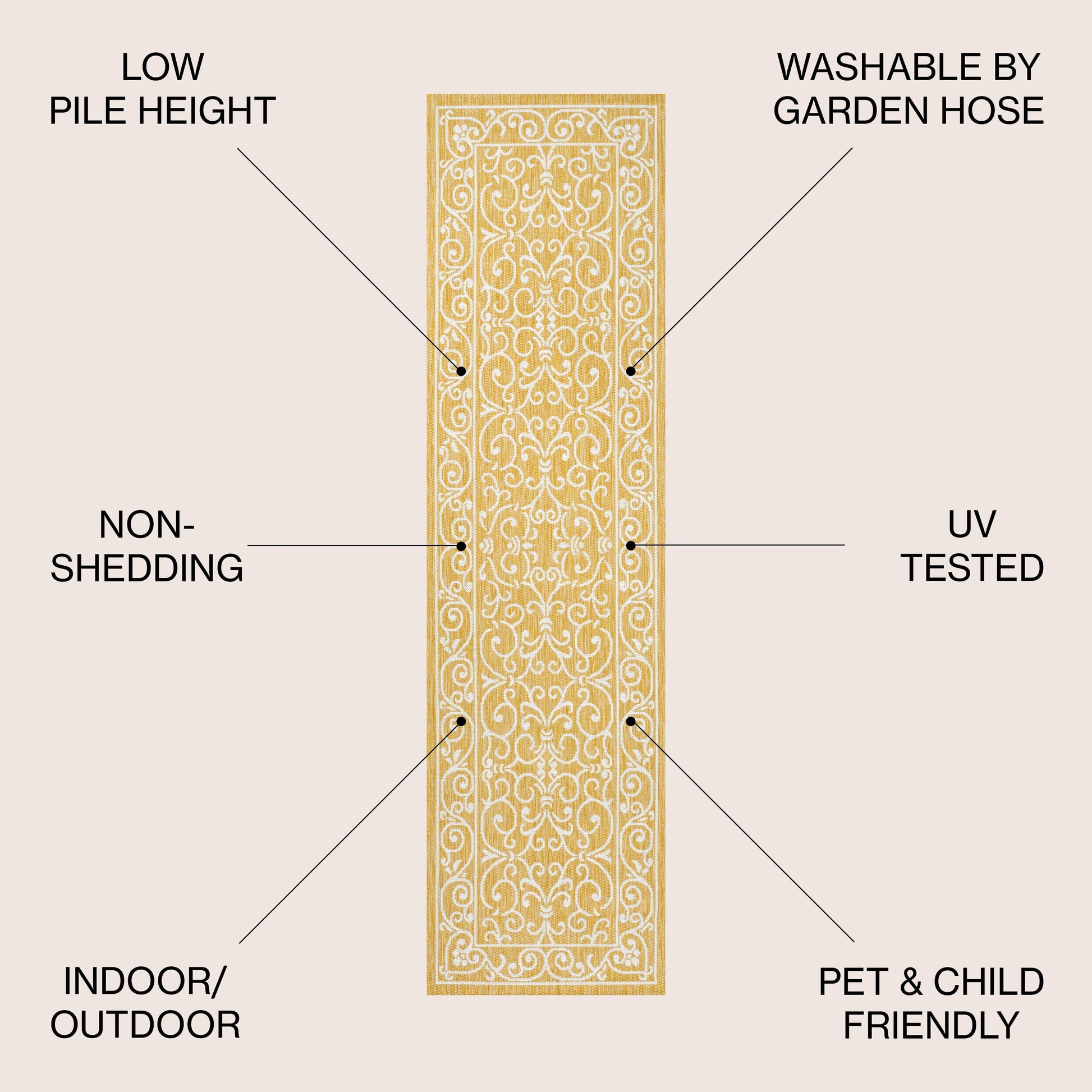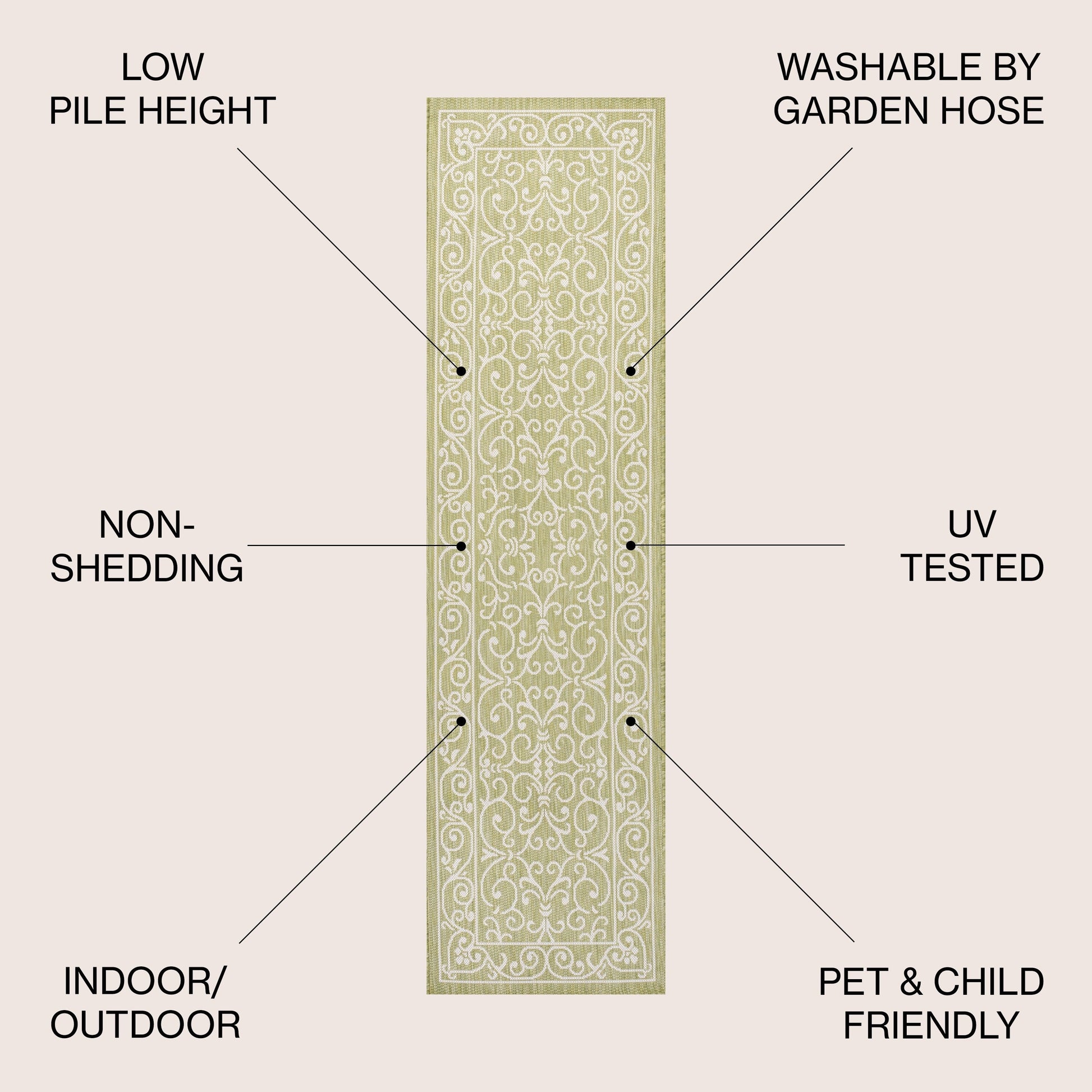 - Runner: 2 feet wide x 10 feet long x 0.19-inch pile height