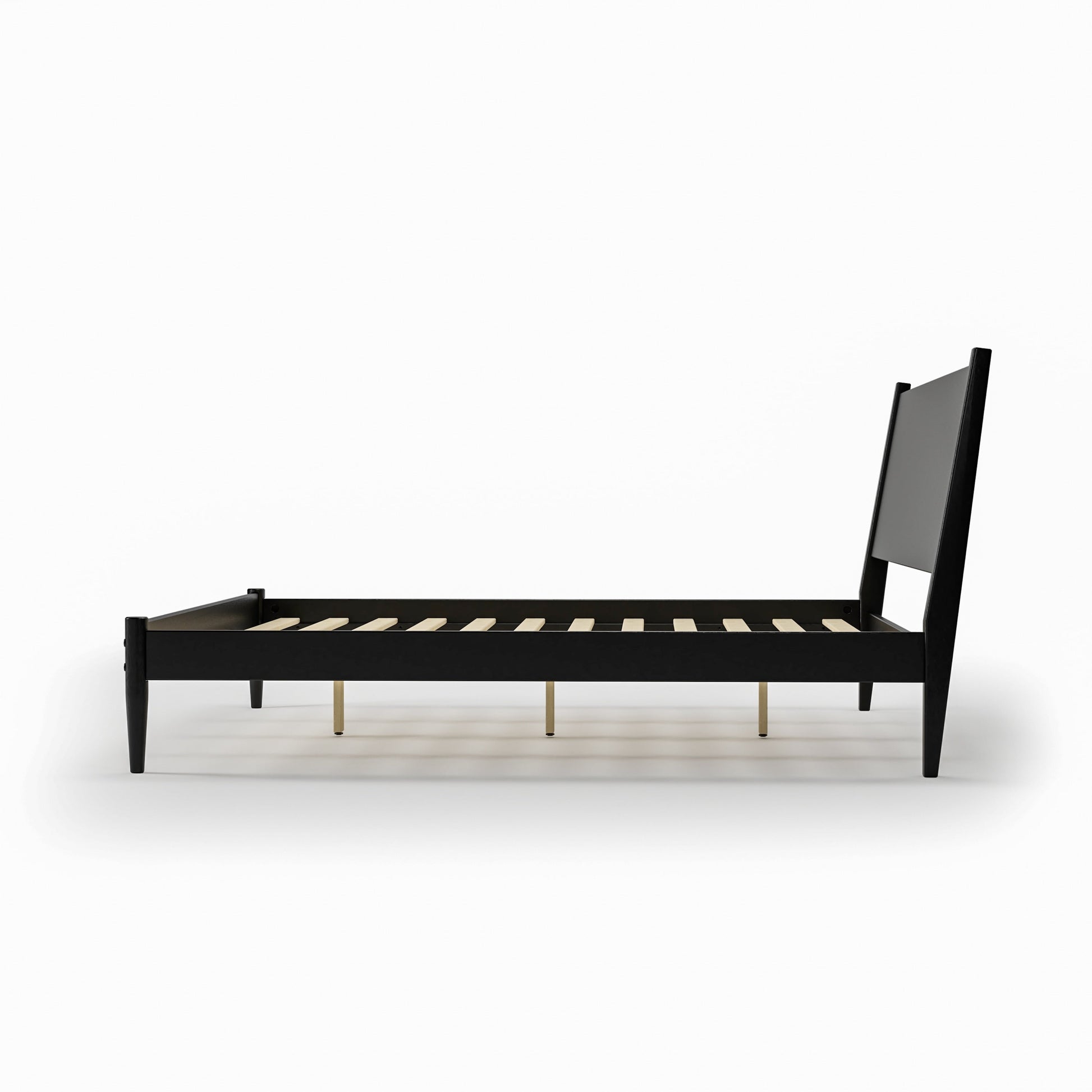• Tête de lit à panneau lisse avec montants allongés et pieds ronds et effilés